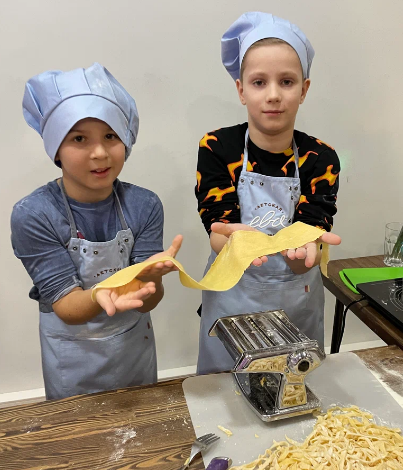 Дети научатся чистить и подготавливать овощи, резать, варить вкусный бульон, работать с мясом и специями, делать блинное тесто и клубничную начинку, запекать картофель с приправам и делать вкусный, нежный фарш, формировать тефтельки и жарить их с томатным соусом.