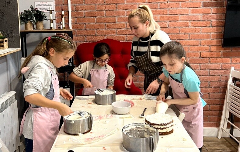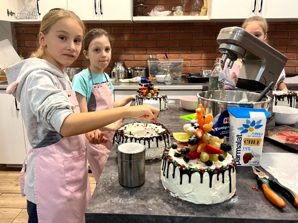 Родители, деток стоит покормить перед мастер-классом, так как обычно никто не хочет резать торт на студии, а забрать домой и угостить родных и друзей.